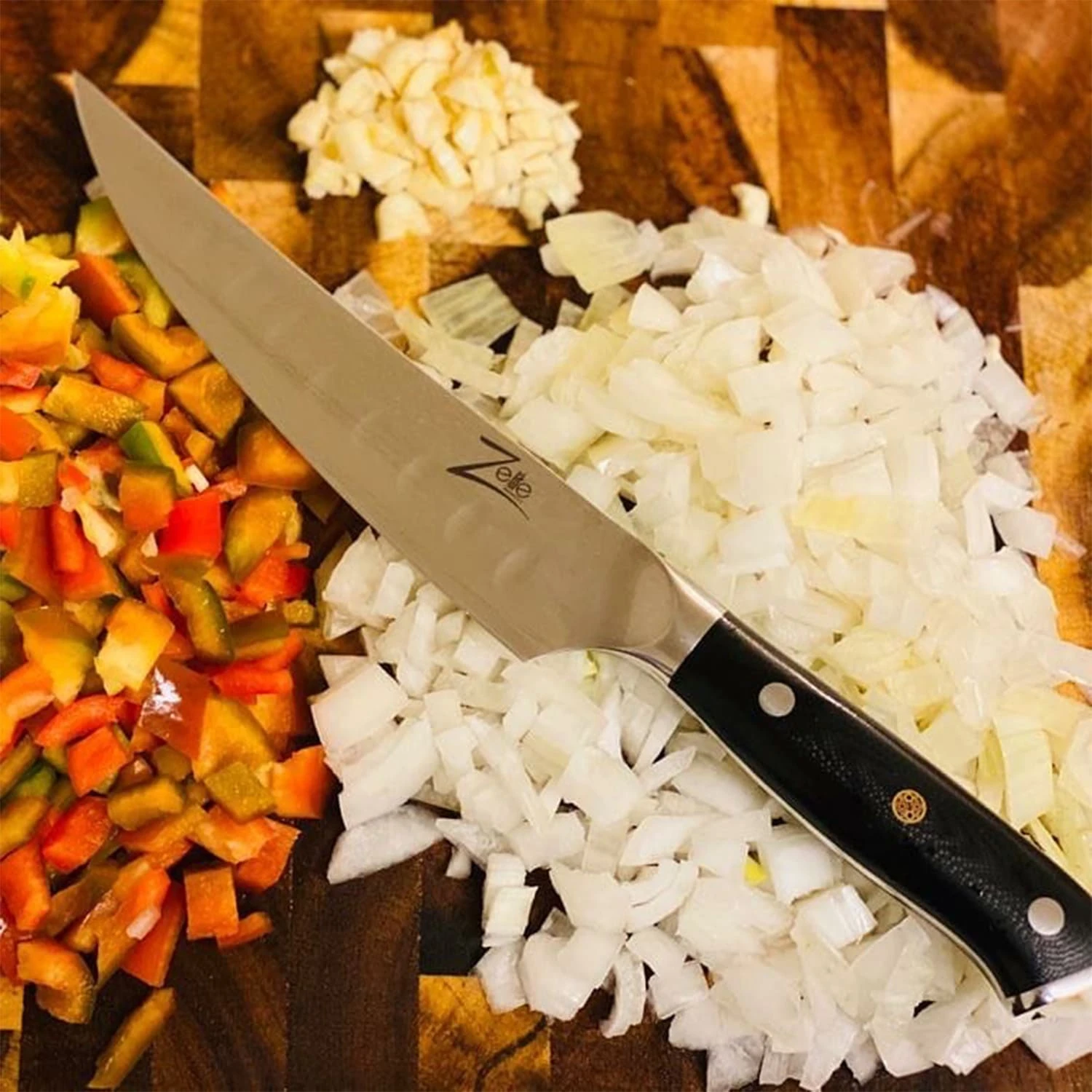 Exklusive Präzisionsmesser nach japanischem Vorbild: Die handgeschliffene Zelite Infinity by Klarstein Alpha-Royal Japanese Messerserie erfüllt hohe Ansprüche bei jeder Kochkunst. Insgesamt 67 Schichten bilden als hochwertiger, japanischer Damaszener-Stahl übereinanderliegend die changierende Klinge. Durch eine perfekt ausbalancierte und ergonomische Formgebung und einen nahtlosen, dreifach vernieteten Griff aus G10-Glasfaser liegen die eleganten Küchenwerkzeuge wunderbar in der Hand. Hier verbinden sich Schärfe, Haltbarkeit, Gewicht, Kontrolle und Handhabung mit außergewöhnlichem Design, perfektioniert durch eine kunstvolle 3-Metall-Mosaikniete im Griff.