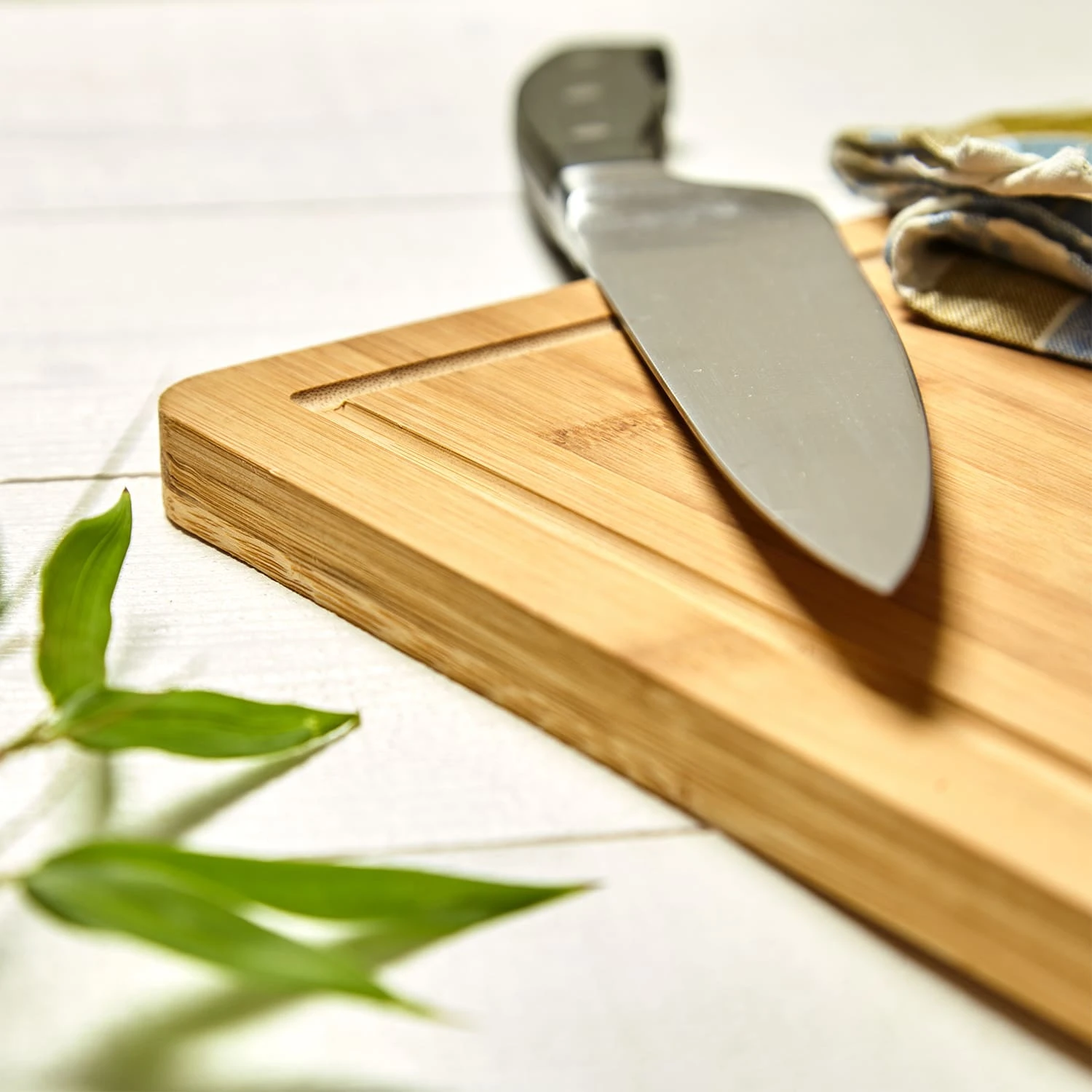 Die nachhaltigen Batvik Küchenbretter aus Bambus von Klarstein sind perfekt für deinen plastikfreien Haushalt! Das kleinste Schneidebrett aus unserer Reihe besitzt eine praktische Saftrinne und geht schonend mit deinen Messerklingen um – diese stumpfen selbst beim kraftvollen Hacken nicht ab! Das sorgfältig verarbeitete Bambusbrett dient auch zum Tranchieren und Servieren – dabei sieht es fantastisch aus und passt zu jedem Interieur.