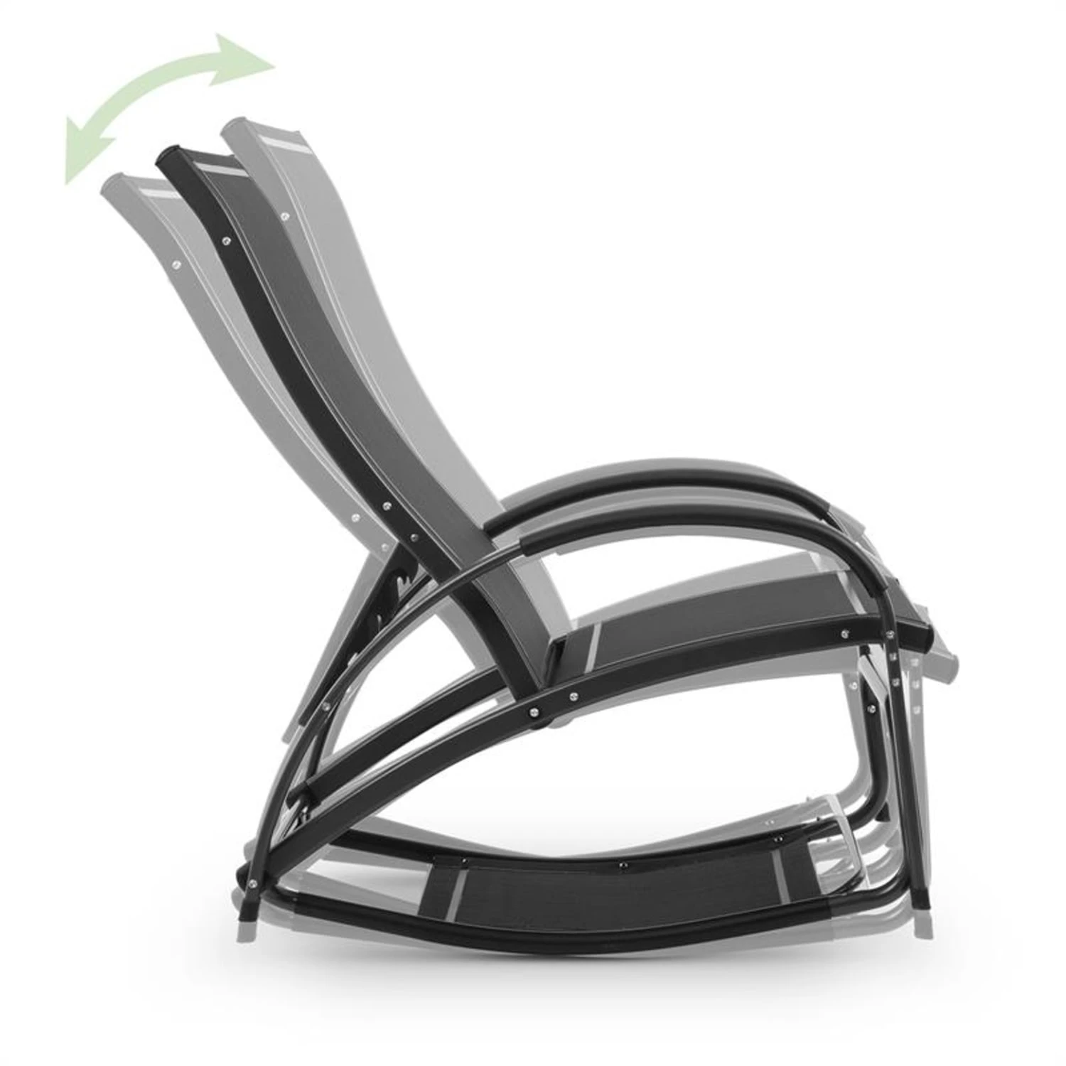 Außergewöhnlich: Innerhalb weniger Sekunden ist aus der Sonnenliege ein Schaukelstuhl geworden. Dabei wird lediglich das Fußteil nach unten geklappt und durch Einrasten in zwei Halterungen befestigt – schon lässt es sich entspannt schaukeln. Natürlich ist auch hierbei die Rückenlehne verstellbar, was den Komfort noch zusätzlich erhöht. Die Gartenliege bzw. der Schaukelstuhl ist mit dem stabilen Rahmen aus Aluminium nicht nur robust, sondern auch besonders leicht und lässt sich mühelos woanders positionieren.