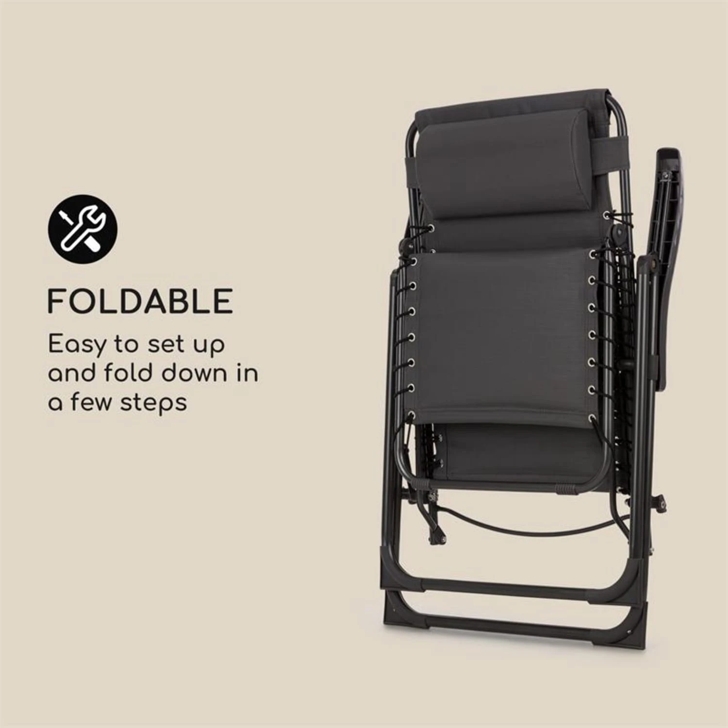 Bei der Verarbeitung hat Blumfeldt nicht nur auf hohe Qualität, sondern auch auf besonderen Komfort geachtet: Das PureRelaxation System besticht deshalb mit einem ergonomischen Design und einer 4 cm hohen Polsterung. Der Rahmen besteht aus robusten Stahlrohren, die der Liege jederzeit einen stabilen Stand verleihen. Ein abnehmbares und höhenverstellbares Kopfkissen mit Elastikband gewährleistet außerdem eine äußerst bequeme Nutzung. Zusätzlich zu ihrem eleganten und edlen Erscheinungsbild sorgt die Sonnenliege mit einer verstellbaren Rückenlehne immer für die richtige Lage und den bequemen Sitz. Zusammengeklappt nimmt die California Dreaming Sonnenliege von Blumfeldt wenig Platz ein und ist mit wenigen Handgriffen aufgestellt. Durch ihr wasserabweisendes und atmungsaktives Material kann sie Wind und Wetter trotzen und ist somit ideal für den Außenbereich geeignet.