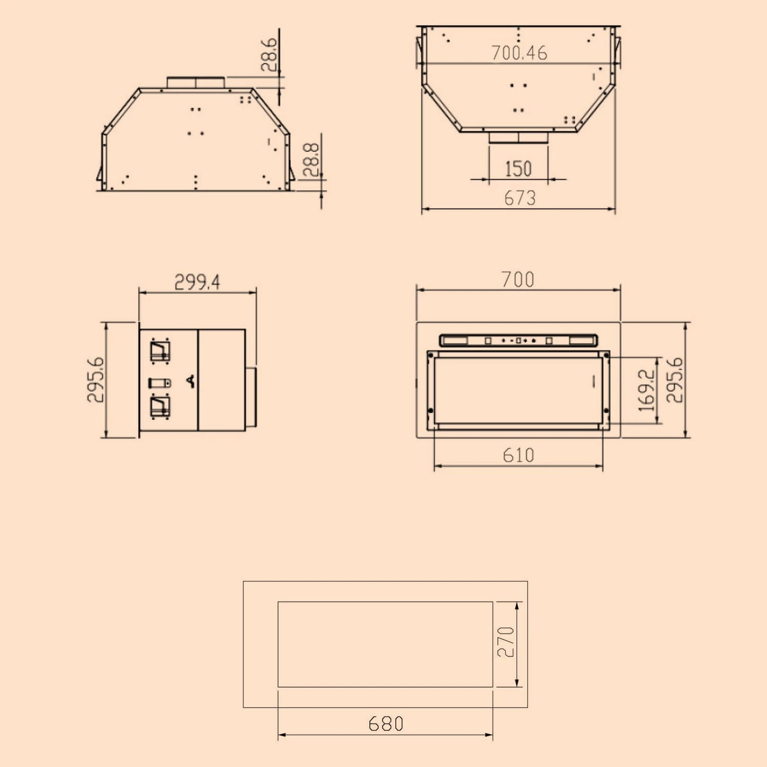 - Maße Einbauöffnung: ca. 68 x 27 cm (BxHxT)