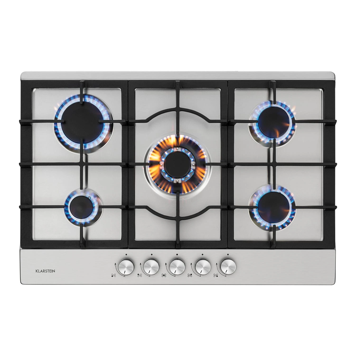 Ignito 5 Zonen Gaskochfeld 5-flammig Sabaf-Brenner Edelstahl Silber