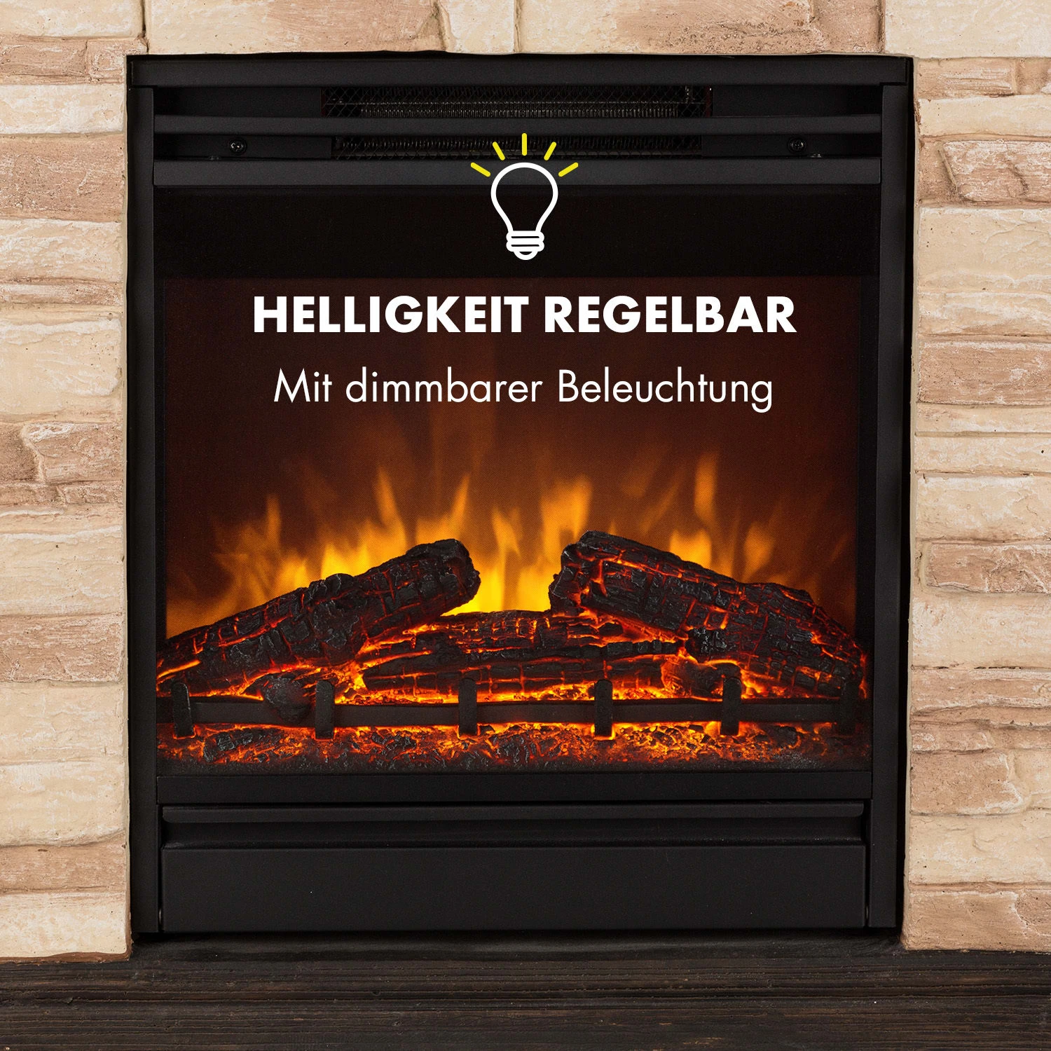 Der elegante Klarstein Kaprun Elektrokamin zaubert realistische Flammenillusionen in jedes Zimmer. Das sanfte Licht ahmt täuschend echt Flammen und glimmende Holzscheite nach und verbreitet sofort eine wohlige, romantische Atmosphäre. Die stromsparenden LED-Flammen züngeln völlig unabhängig von der Heizfunktion auch in lauen Sommernächten. Für angenehme Wärme sorgt die zuschaltbare, zweistufige Heizfunktion welche du per Fernbedienung steuern oder sogar mit dem Timer vorprogrammieren kannst. Hinzu kommt ein einzigartiges, rustikales Steindekor, welches den Elektrokamin einem echten Kamin zum Verwechseln ähnlich macht.