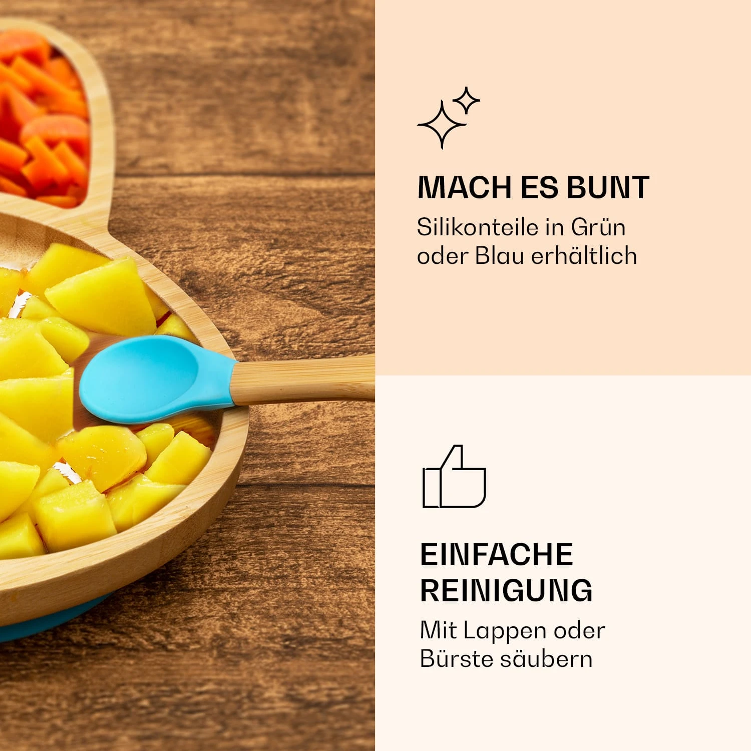 - Geschirrset für Kleinkinder mit Bambusteller und Löffel
