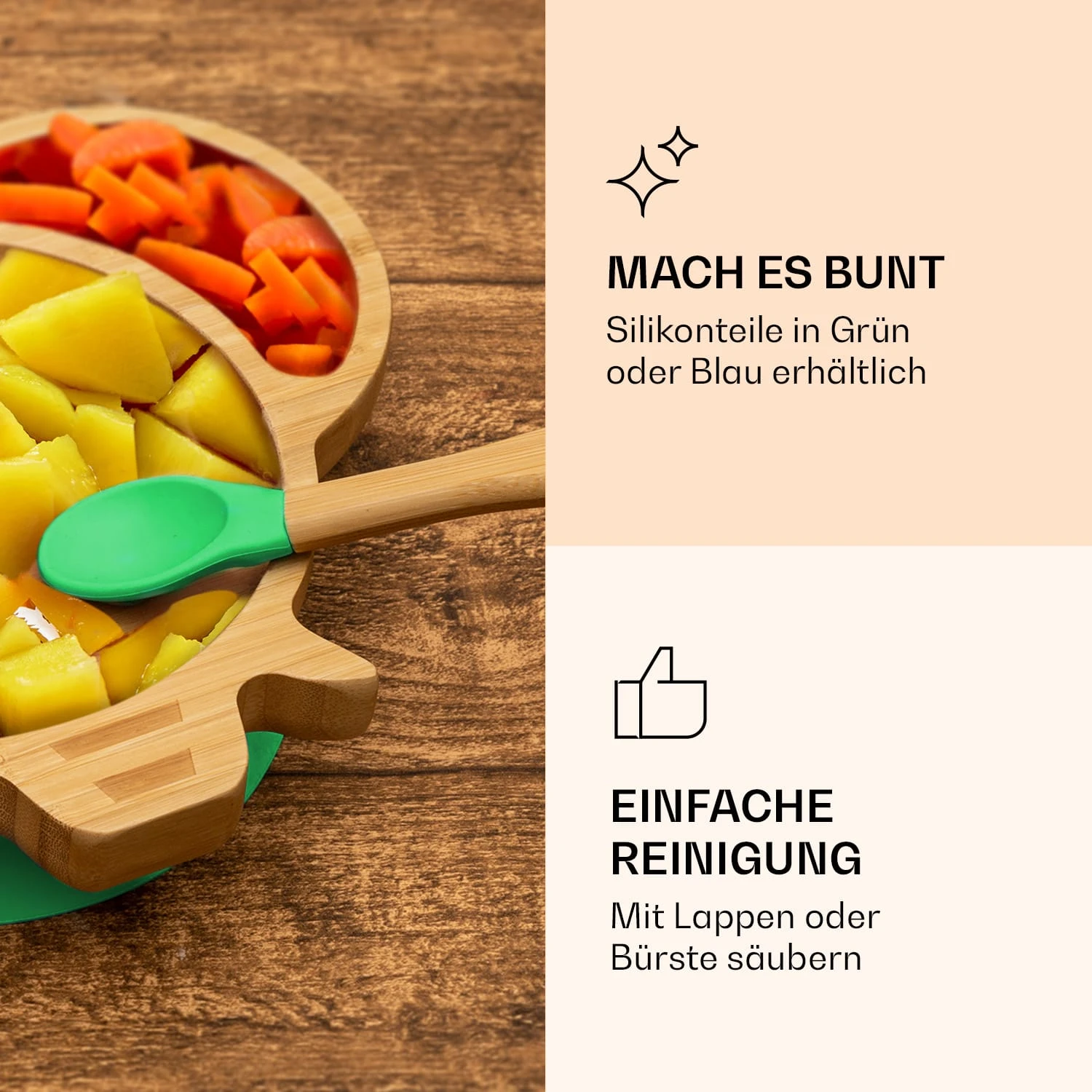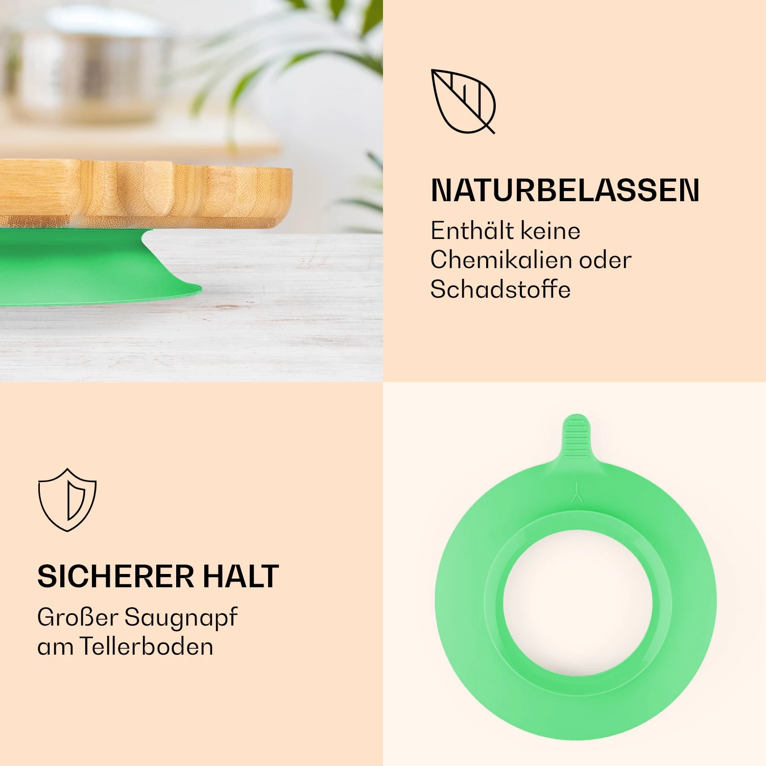 Kindergeschirr Bambusteller & Löffel 250 Ml Inkl. Saugnapf 18 X 18 Cm