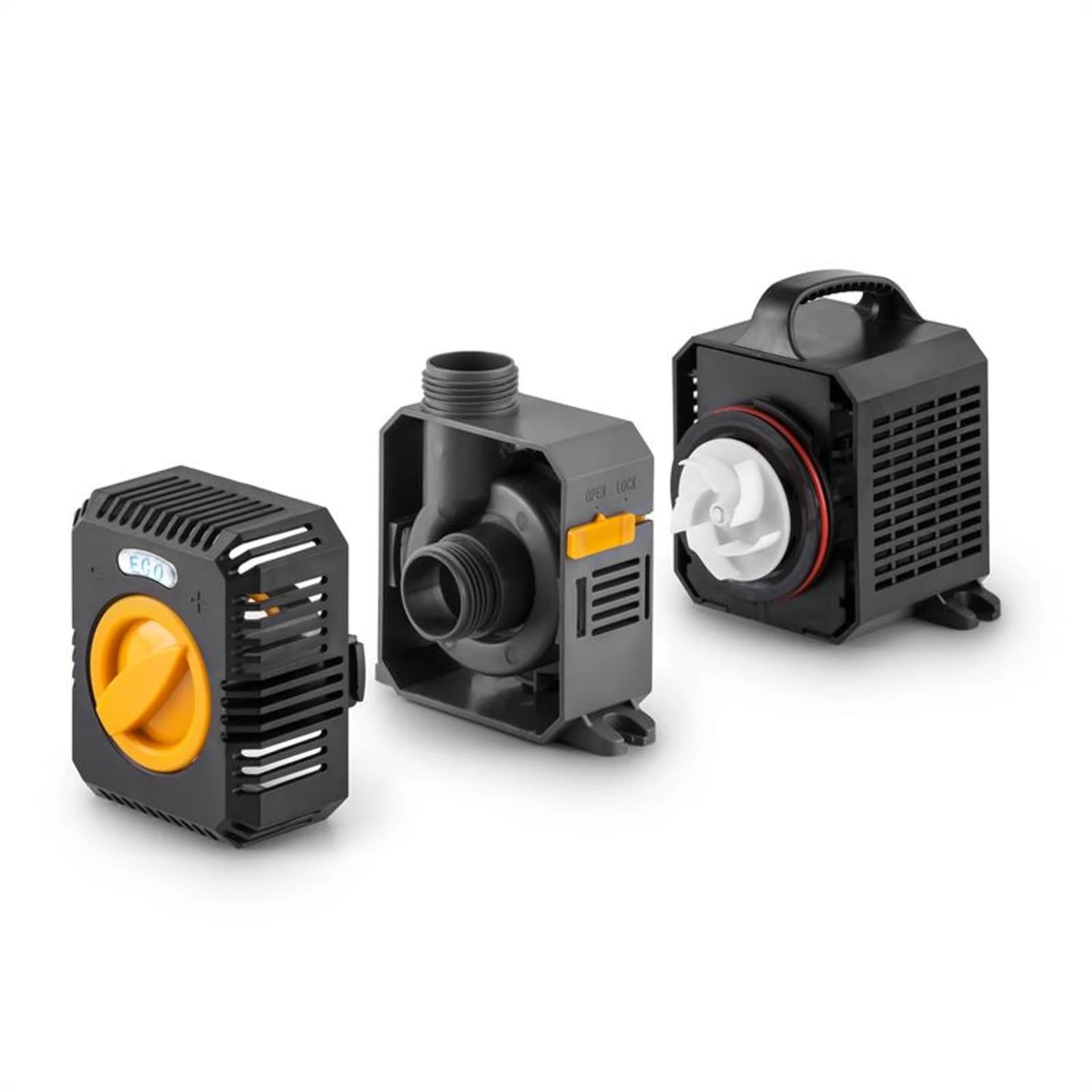 Mit der Waldbeck Lagoon 3600 Teichpumpe erhalten Sie einen leistungsstarken Wasserförderer mit flexiblem Einsatzhorizont. Dank EcoSave-Technologie und einem sehr geringen Verbrauch von gerade einmal 20 Watt je Stunde ist sie der ideale, stromsparende Helfer bei der dauerhaft notwendigen Wasserumwälzung in Bachläufen und Fischteichen. Mit einer Förderung von bis zu 3.600 Litern pro Stunde bewegt sie auch große Wassermengen, was die notwendige Sauerstoffzufuhr in Teich oder Bachlauf sicherstellt. Darüber hinaus ist sie in der Lage, Partikel bis zu 6 mm Größe mit dem Wasser zu fördern und kann so als wichtiger Bestandteil eines Filtersystems arbeiten, um gerade Fischteiche von Verunreinigungen zu befreien – was Kois und Goldfische danken werden. Ein Filterkorb verhindert, dass Laub, Wasserpflanzen oder -bewohner in die Bachlaufpumpe gesaugt werden.