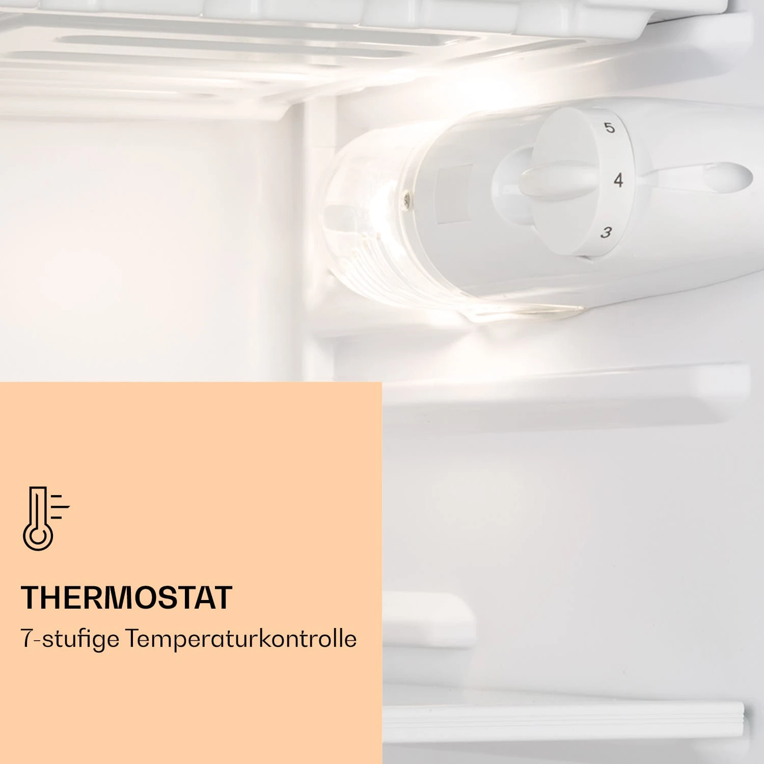 Der Klarstein Luminance Frost Kühlschrank bringt mit seiner Front aus Glas coole Eleganz in deine Küche. Dabei verzaubert er durch seine moderne Optik und ist wunderbar kompakt. Dennoch ist er im Innern reich an Platz: 91 Liter Fassungsvermögen bieten Raum für Lebensmittel aller Art. Mit seinen 2 Glasböden, 3 Türfächern, dem Gefrierfach und einem extra kühlen Crisper-Fach gelingt dir beste Ordnung im Kühlschrank.
