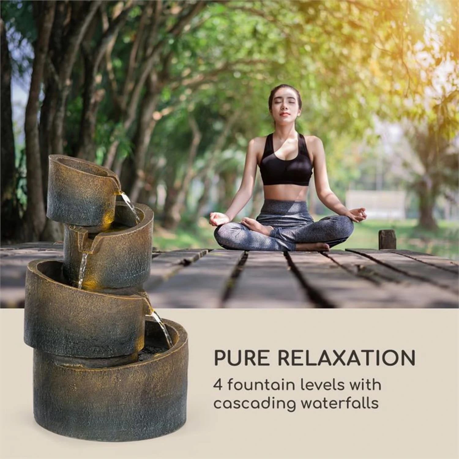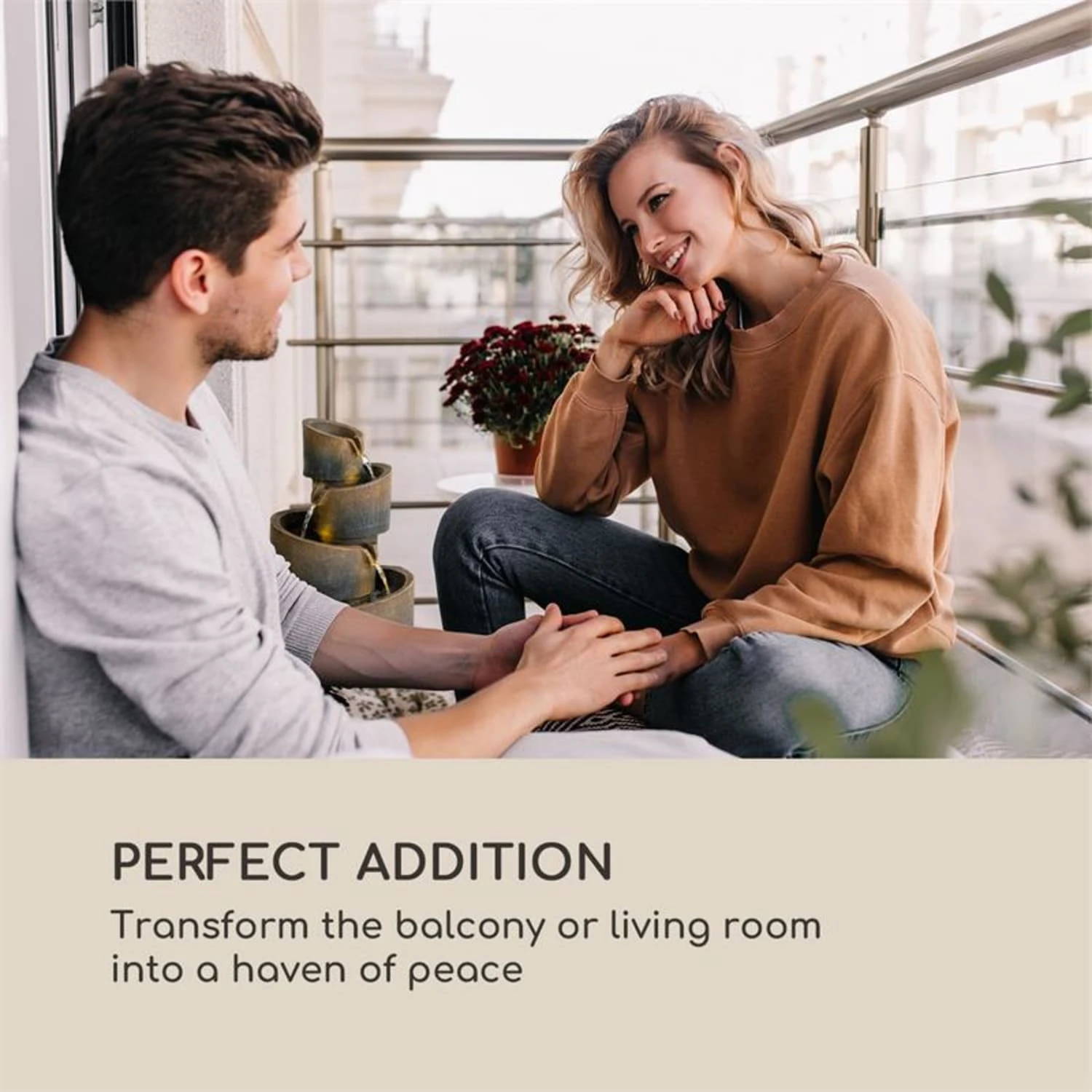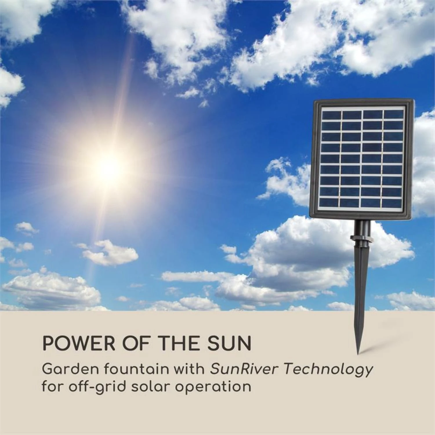 Entspannung zwischen den vier Seen: Der Blumfeldt Mantua Solar-Kaskadenbrunnen lässt mit der Kraft der Sonne das Wasser zwischen seinen vier Stufen fließen und hilft die Welt mit seinem funkelnden Wasserspiel zu entschleunigen. Der täuschend echt aussehende Brunnen ist dabei äußerst dekorativ und eine Zierde für jeden Garten, Balkon oder das Wohnzimmer.