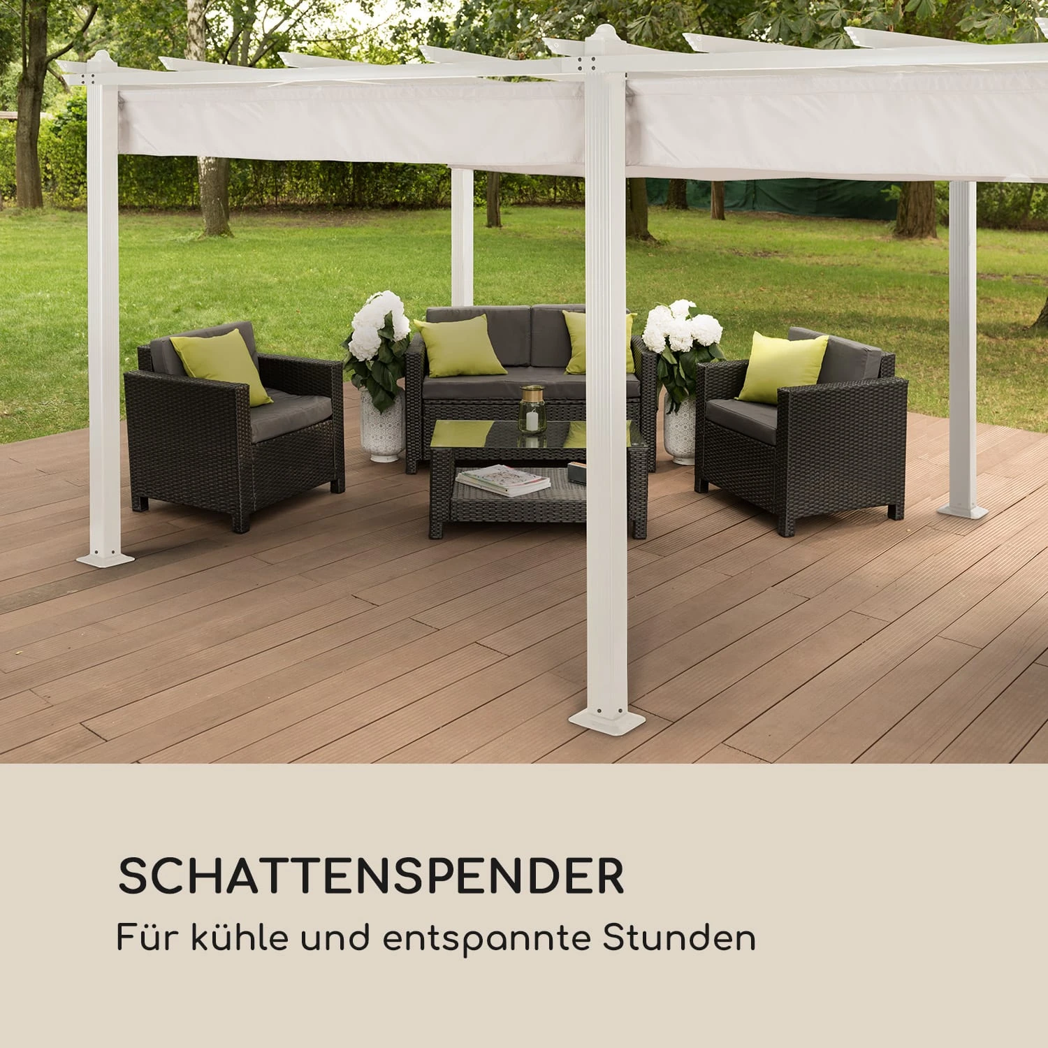 Genieße alle Wetterlagen im Freien: Unter dem modernen Sonnendach für deinen Pantheon Pavillon von blumfeldt!