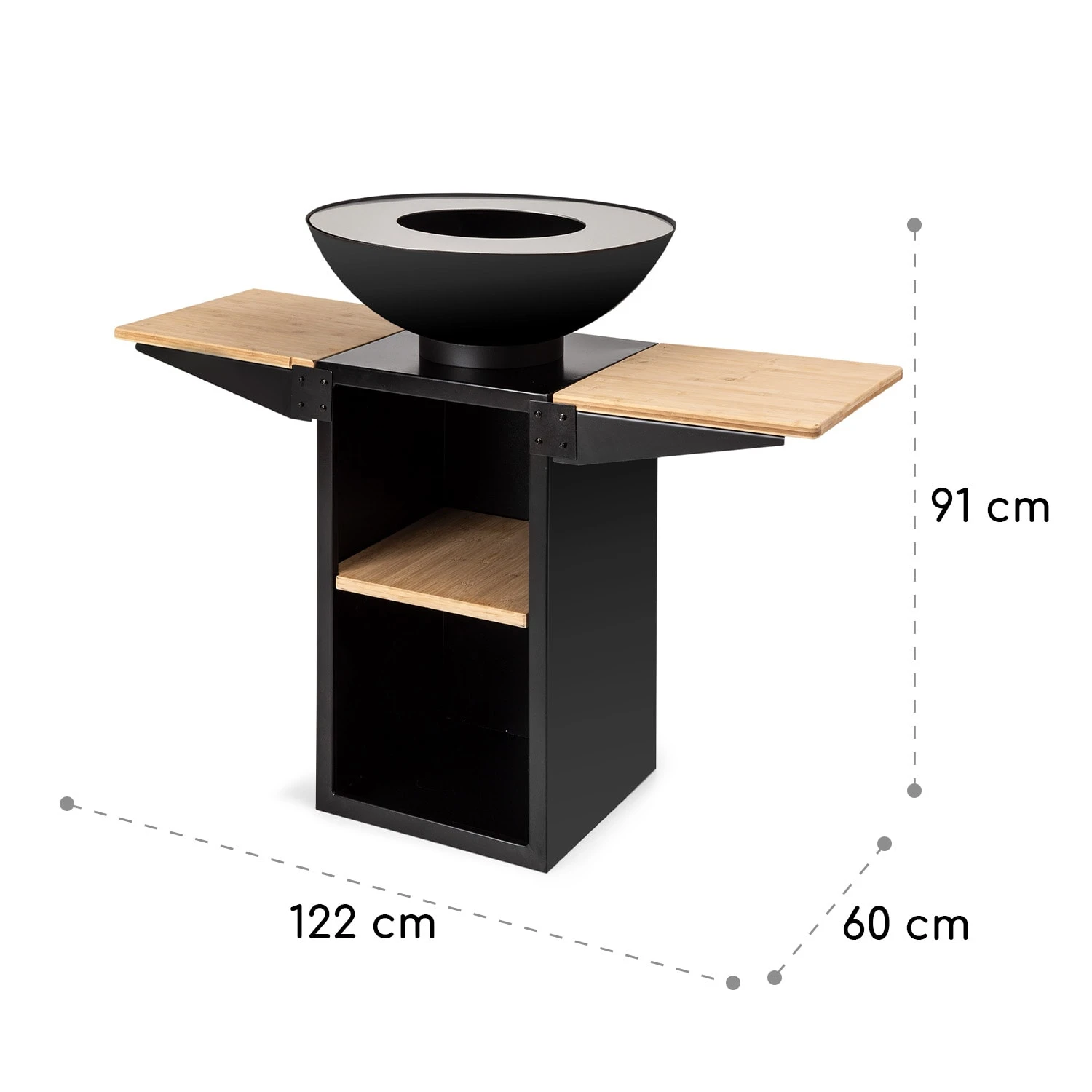 Savage 2.0 Tall Feuerschale Mit Grill Bambus-Seitentische Inkl. Wetterschutz