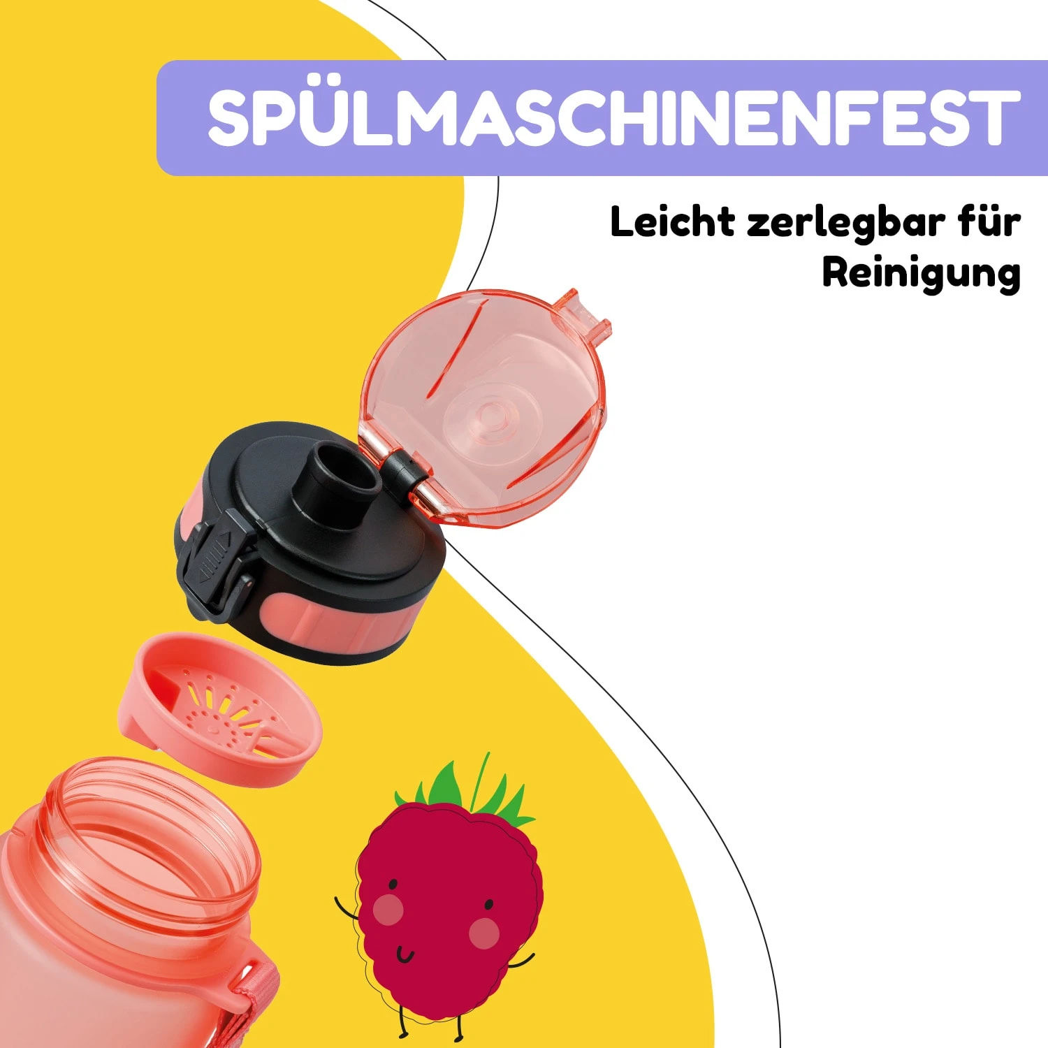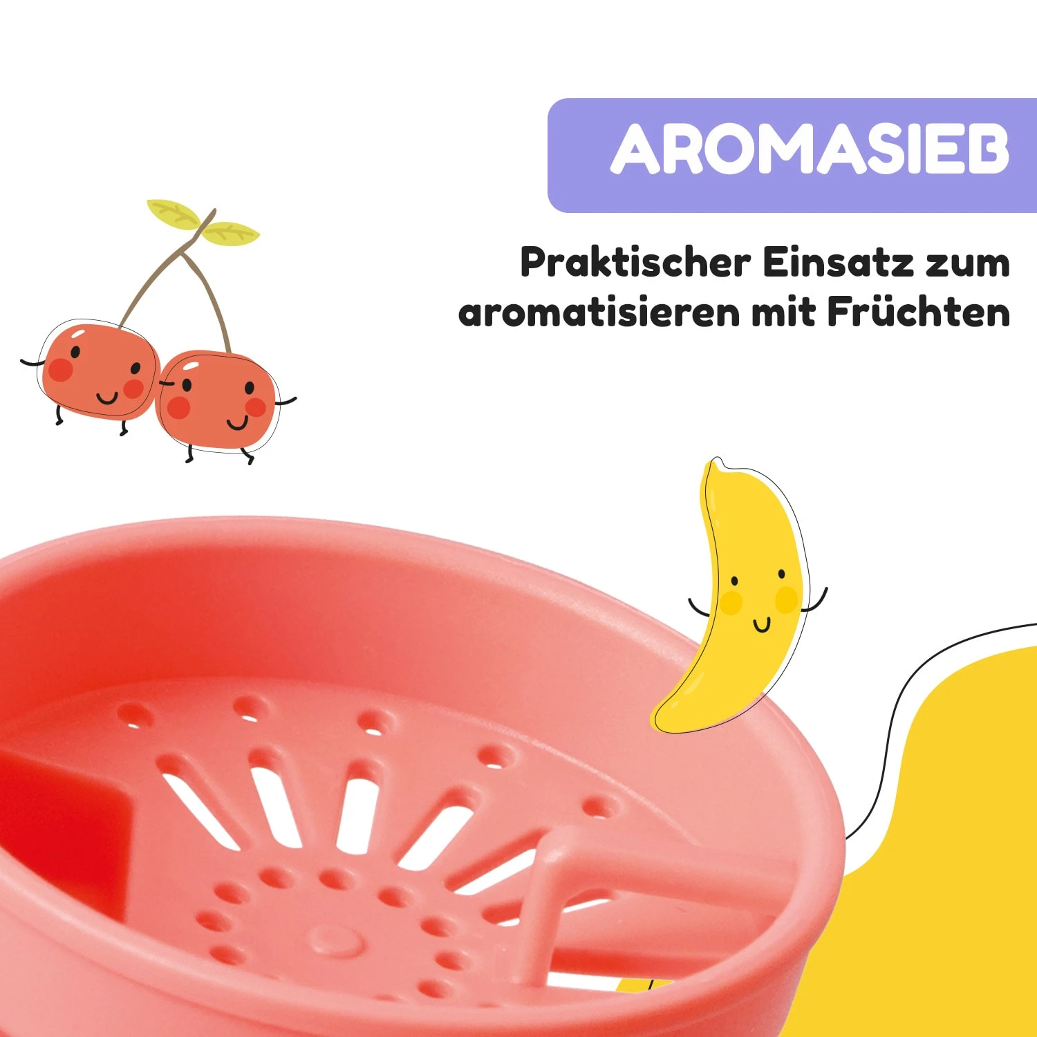 Durch die Herstellung aus BPA-freiem Tritan ist diese Trinkflasche perfekt als Wasserflasche geeignet, denn das Material ist nicht nur geschmacksneutral, sondern auch absolut Lebensmittelsicher. Ein feines Extra: durch den Fruchtaufsatz kannst du das Wasser mit köstlichen Früchten versüßen. Das Fruchtfleisch bleibt beim Trinken in der Flasche und entfaltet so im Wasser ein feines Aroma.