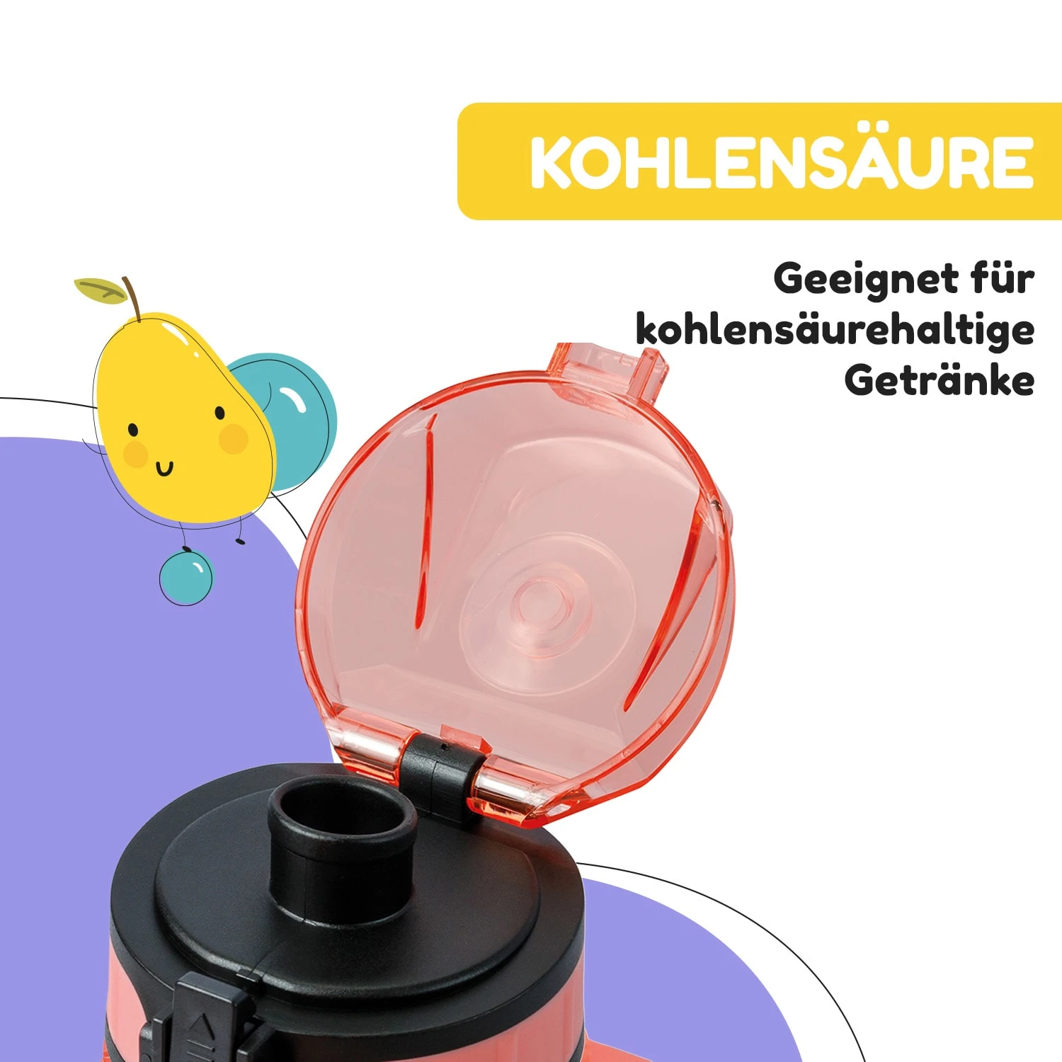 Die Klarstein schmatzfatz Trinkflasche ist der perfekte Begleiter im Alltag. Ob klein oder groß: Du bist immer mit deinem Lieblingsgetränk versorgt. Dabei reist du stets mit leichtem Gepäck. Durch das Kunststoff-Material ist die Trinkflasche kaum zusätzlicher Balast und durch ihr kompaktes Format passt sie sogar in den Turnbeutel. Ob Schultasche, Rucksack oder auch in der Halterung am Fahrrad: Es läuft nichts aus, denn diese komfortable Trinkflasche verfügt über einen sehr auslaufsicheren Verschluss.