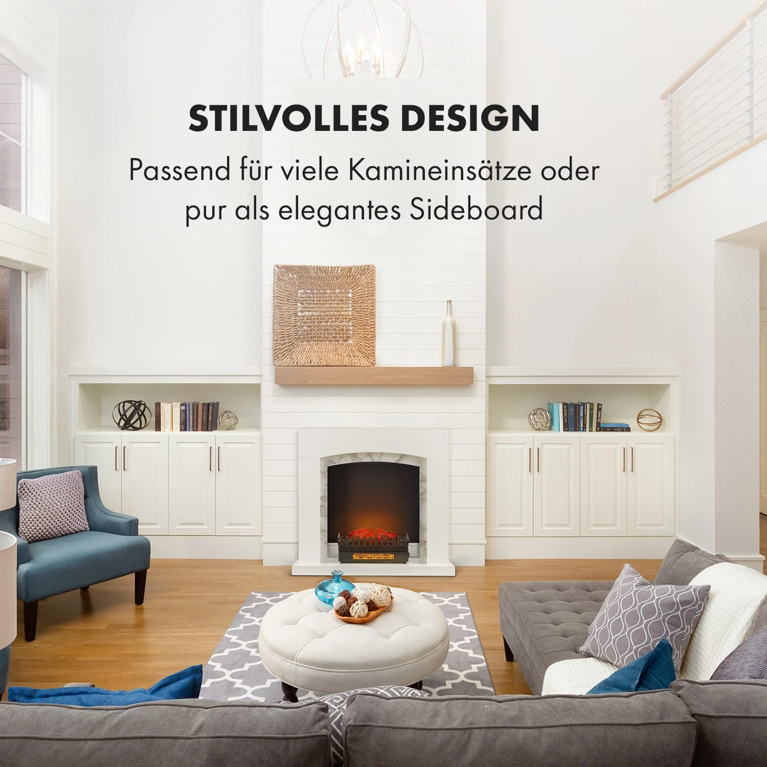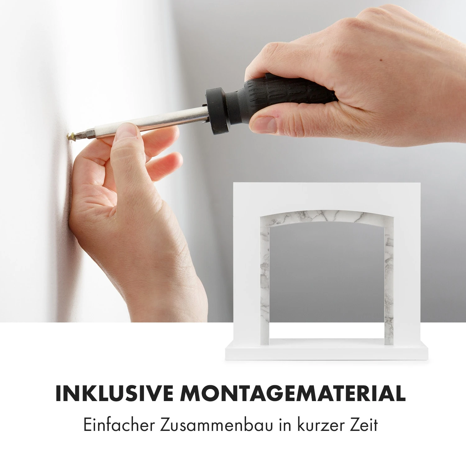 Eine charmante Dekoration im Antlitz eines echten Kamins: Das Klarstein Studio Frame II Kamingehäuse sorgt in jedem Raum für eine behagliche und romantische Atmosphäre. Der Dekokamin bildet für viele verschiedene Elektrokamin-Einsätze den passenden Rahmen. Die Oberseite dient als Ablagefläche, auf der zum Beispiel Fotorahmen oder Blumen aufgestellt werden können und vom Charme des Kamins profitieren. Dank der robusten Ausführung aus MDF mit Marmordekoration und dem daraus resultierenden Eigengewicht steht er absolut sicher. Natürlich lässt er sich bei Bedarf auch an der Wand verschrauben oder als Rahmen für Dekorationen wie Blumen, Kerzen oder Gemälde verwenden.